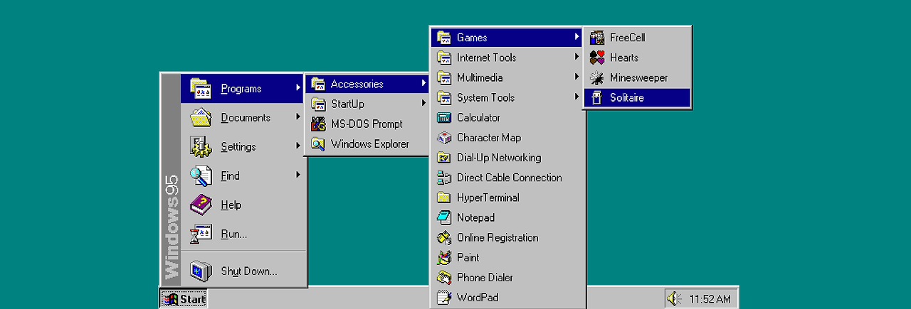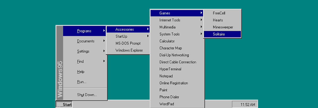 아이콘이 없는 Windows 95 시작 메뉴는 훨씬 더 많은 내용을 읽어야 합니다.