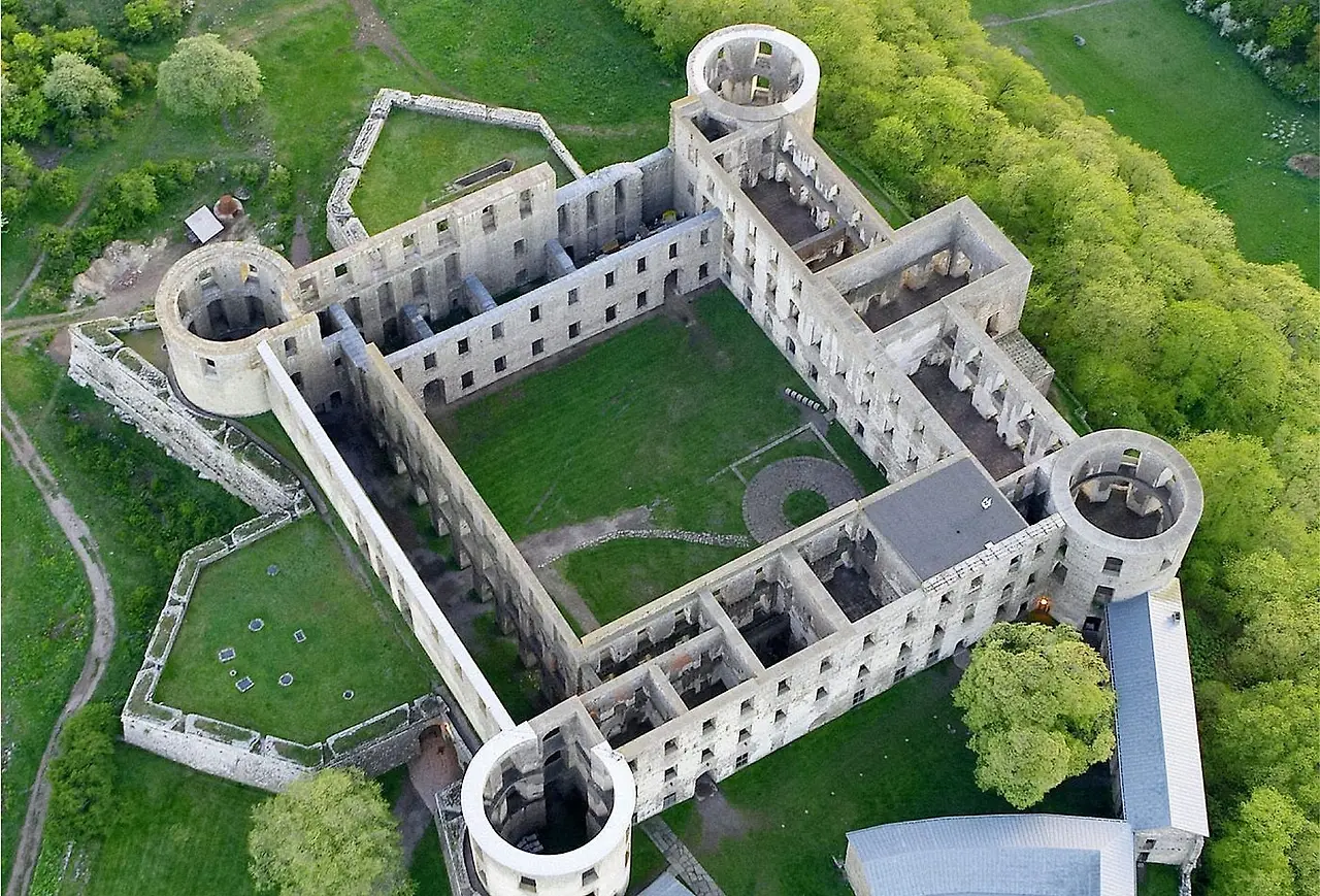 이 기호는 다른 많은 이름(프레첼, 세인트 존스 암즈, 보웬 매듭, 진정한 연인 매듭)으로 알려져 있으며 북유럽 국가에서는 관심 장소를 표시하는 데 사용됩니다. 추측컨대 기원은 성의 포탑일 수 있습니다.