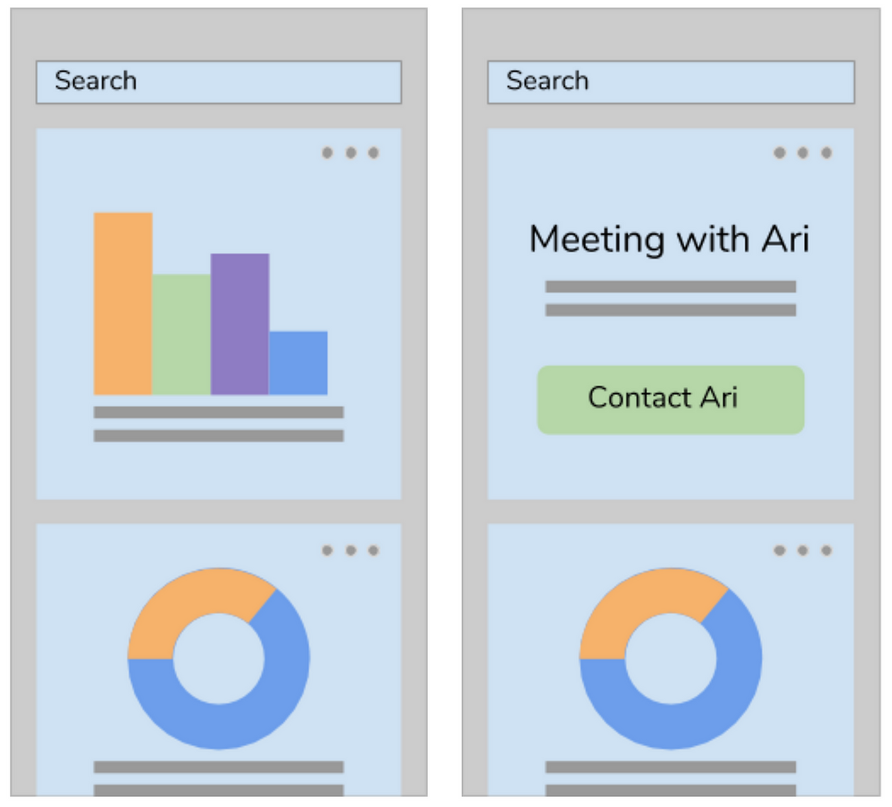 결국, 여러 차례의 인터뷰와 디자인 스튜디오를 거쳐 위젯처럼 사용자 선호도에 따라 교체할 수 있는, 카드가 있는 모바일용 피드에 집중했습니다. 카드에서 조치를 취하고, 카드를 재정렬하고, 조직을 위한 자신만의 카드를 만들 수 있습니다.