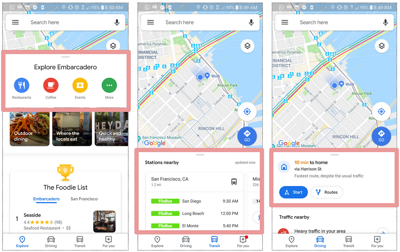 발견. Google 지도는 앱을 열자마자 레스토랑과 이벤트를 탐색할 수 있는 방법을 보여줍니다. 심지어 여러분이 알지 못했을 수도 있는 옵션이 포함되어 있습니다.