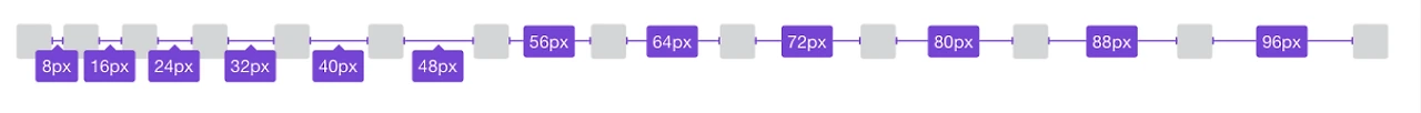 모범 사례에서는 8의 배수를 사용하여 그리드 시스템과 일치시키므로 모든 컨테이너, 다양한 구성 요소, 정렬이 8로 나누어져 시스템이 따라야 합니다.