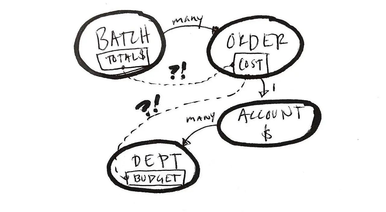 예를 들어, ACCOUNTS는 DEPARTMENTS에 연결되고 DEPARTMENTS는 BUDGET에 연결된다는 것을 알고 있습니다. 현재 주문으로 인해 예산이 초과되면 시스템은 오류를 표시해야 합니다.