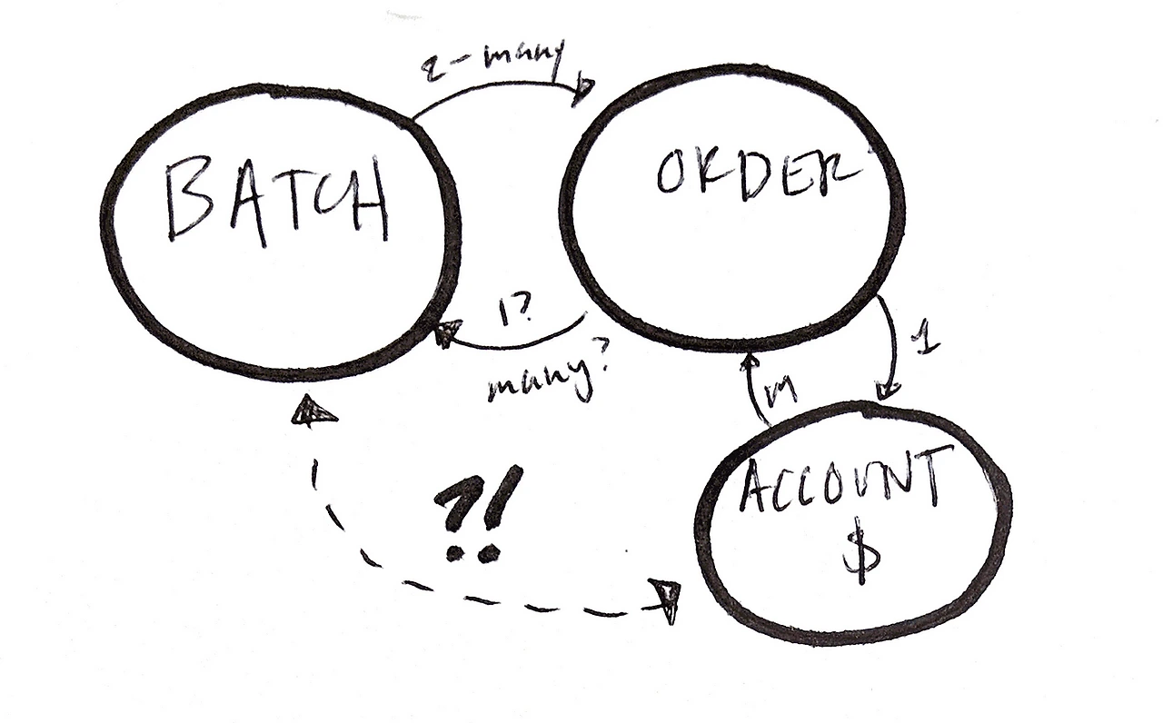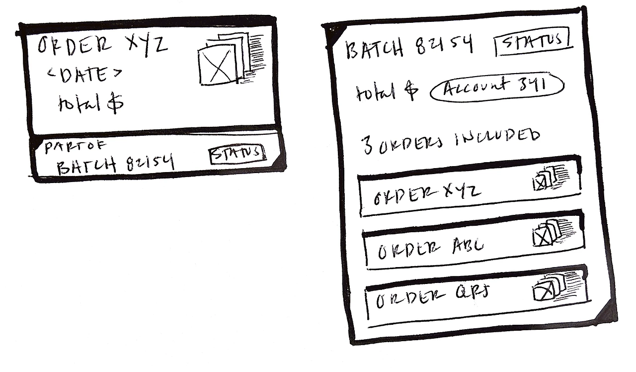 따라서 일괄 처리의 일부분이든 아니든 간에 B2B 도구에서 주문은 일반적으로 동일하게 보입니다. 각 인스턴스는 추가된 정보를 표시하여 일괄 처리 X의 일부임을 분명히 합니다. 반대로 ORDER, ACCOUNT 및 BATCH는 모두 사용자의 멘탈 모델에서 매우 다른 개체이므로 서로 분명히 구별됩니다.