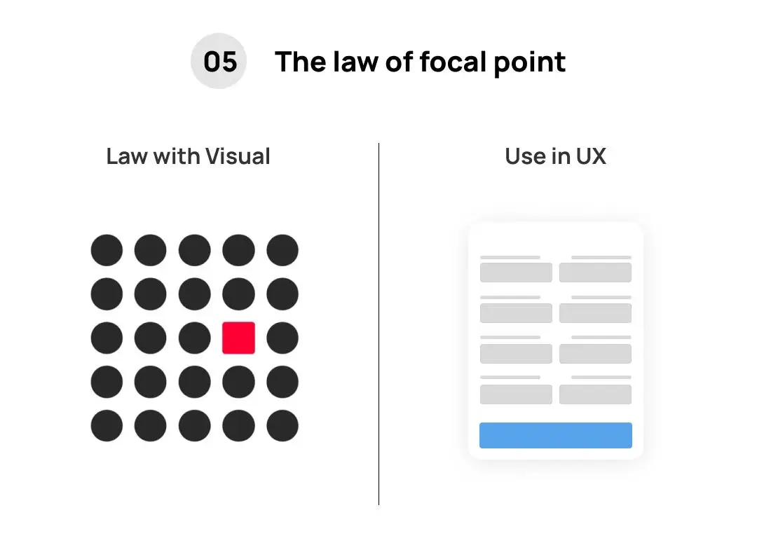 초점의 법칙은 "시각적으로 눈에 띄는 것은 무엇이든 처음 보는 사람의 관심을 빠르게 사로잡는다."라고 말합니다.