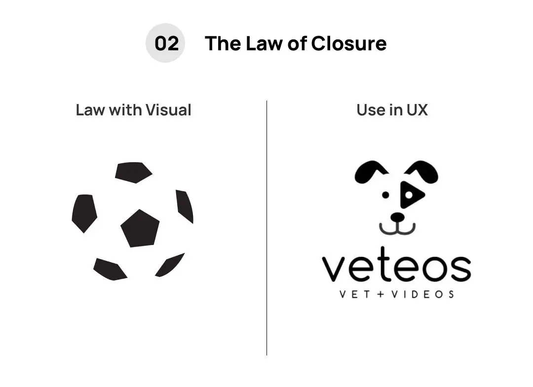 폐쇄의 법칙은 "시각적 요소의 복잡한 배열을 볼 때 우리는 인식할 수 있는 하나의 패턴을 찾는 경향이 있다."라고 말합니다.