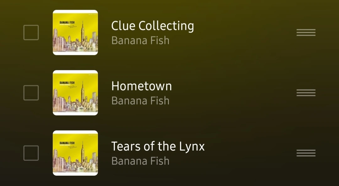 작품이 끝나고 인물의 감정이 해소가 되면서 덩달아 감상자들도 작품 속에 빠져나오게 될 때 느껴지는 감정이 '카타르시스'라는 해석이 있다. 사실 나는 바나나피쉬를 본 후 작품 속에서 빠져나오는데 오랜 시간이 걸렸다. 약 9시간 정도 되는 이야기를 따라가면서 상황에 이입하고 격한 감정을 느끼고 있을 때 주인공의 죽음은 엄청난 연민과 공포의 감정을 안겨주었고 이에 벗어나는데 적어도 일주일이 소요되었다. 애니메이션과 원작 만화를 여러 번 반복 감상하고 작품에서 자연스럽게 빠져나온 지금, 바나나피쉬는 내 마음속에 깊이 새겨진 나의 삶 일부이다.