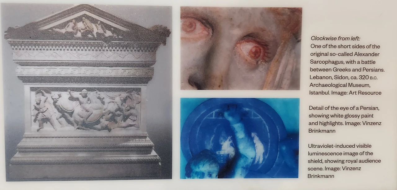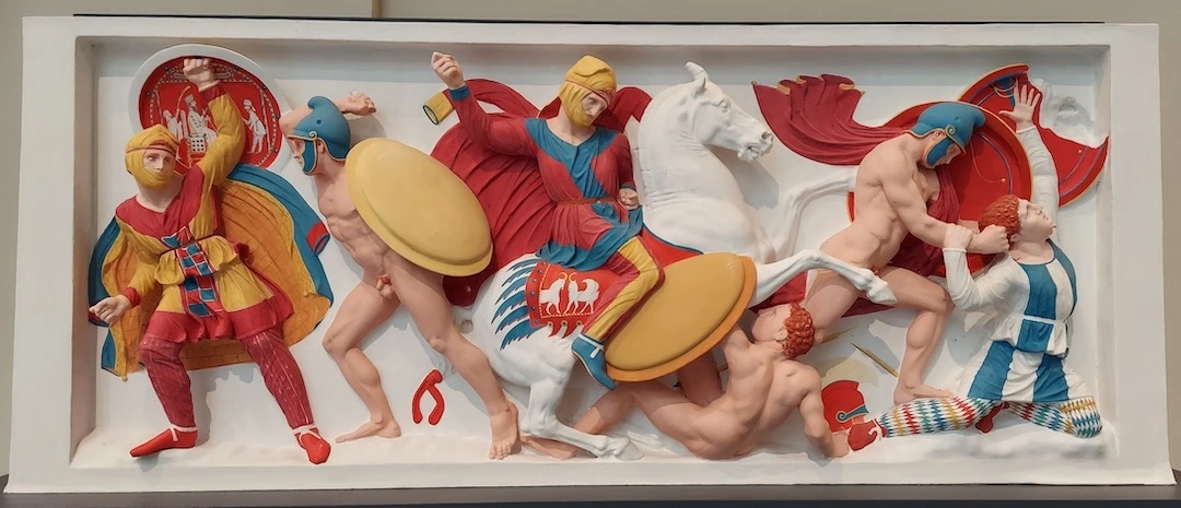 Reconstruction of one side of the so-called Alexander Sarcophagus, with a battle between Greeks and Persians, 2006