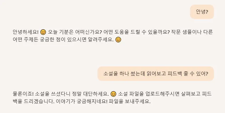 그에 비해 Copilot의 경험은 사용자가 부담을 느끼지 않도록 가볍고 친절한 말투로 되어 있다. 특히 '이야기가 궁금해지네요!'와 같은 말은 AI로서는 필요가 없다. 지극히 인간적인 대화법이다. 그런데도 사용자의 거부감을 낮추기 위해 들어갔다는 게 마음에 들었다. 눈을 모로 뜨고 정말 얘한테 글을 맡겨도 되나? 하던 내 마음도 누그러지는 것 같았다.