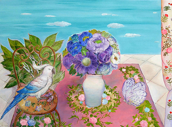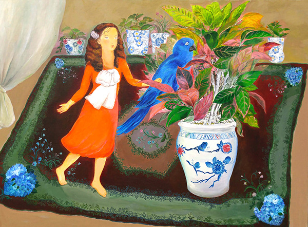 그렇다고 마냥 장수임의 회화를 소박한 프리미티브(원시적)의 범주로 단정하는 것은 그림을 충분히 들여다보지 않은 것이다. 수채화의 투명한 비침을 아크릴 물감으로 무리 없이 옮겨놓는 감각이 오랫동안의 숙련된 화가의 터치를 보여주고 있다. 세필로 표현되는 겹겹의 잎과 가구들의 세부적인 표현들이 작가가 섬세한 기교를 지닌 연주자의 기질을 갖고 있다는 것을 말해준다. 풍성하게 번져가는 꽃, 바닥, 사물들이 지닌 패턴의 미묘한 움직임도 스스로 살아서 존재하는 것들의 생명력 있는 운동감을 표현하고 있다. 이 그림 들 속에는 분명 우리가 기억하는 어렴풋한 기억 속 숨은 그림들이 존재한다. 패턴과 사물과 배경인지 따로 걸린 그림인지도 모를 이야기들이 모두들 사이좋게 자리 잡고 있다.