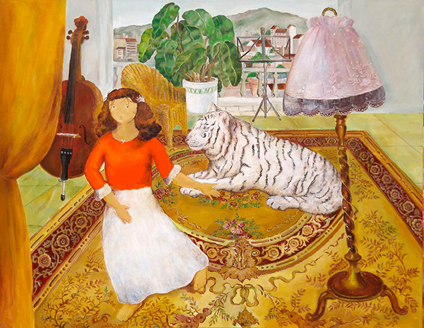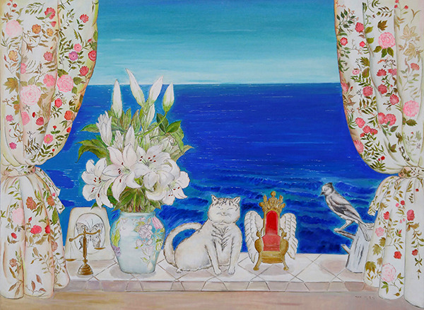 우리가 잊고 있었던 창이 있었다. 커튼을 열어젖히자, 마치 나의 등장을 오랫동안 기다려 오기라도 한 듯 반갑게 맞아주는 각각의 주인공들이 나타난다. 새로울 것도 없이 친숙한 꽃병, 가구와 귀여운 동물들은 첨예하게 구분되거나 긴장감을 지니고 등장하지 않는다. 이 공간 안에서는 누구나가 주인공이다. 바닥의 카펫 패턴과 동물과 나비의 무늬에 새겨지는 색채들은 처음부터 하나였듯이 자연스럽고 친근하게 뒤섞이고 있다. 이들은 그림의 일부라기보다 커튼 뒤로 활짝 열린 마음의 창문처럼 우리에게 나타난다.