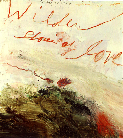 사이 톰블리 Cy Twombly의 그림은 어떤 형태적인 단정이나 의미를 완강하게 거부한다. 어떤 회화적인 사조나 비평의 단조로운 용어도 허락하지 않는 듯, 잔잔하게 색과 끄적거림 글자의 흔적만을 남기고 있다. 톰블리의 그림은 어쩌면 그것을 들여다보는 사람들의 행위나 시간을 더 그림의 일부로 끌어들이고 있는 것 같다. 그런 해석의 빈곤으로부터 그의 그림은 오히려 글자의 시각적 요소, 빈 공간, 겹겹이 쌓인 상이한 색과 낙서와 소리, 시간이 허락해야 나타나는 일상 속의 낡은 물건들의 외형과 맞닿아 있는 것 같다. 아니면 단지 톰블리의 작업실이 있던 동네 골목 한 귀퉁이에 뛰놀던 아이들이 남겨 놓은 낙서에서 착안했던 것인지도 모른다.
