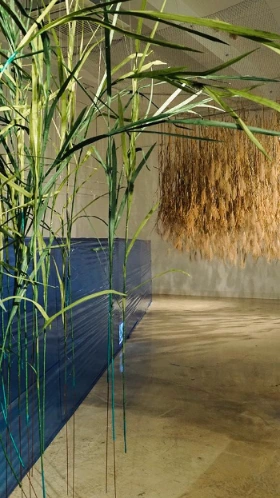 이번 전시의 공간에서는 그러한 상징을 비트는 듯한 (궁극적으로 사물에 관한 애착과 비슷한) 자기애의 유희가 사라지고 있다. 충실하게 공간이라는 무대를 사용하여 꼼꼼하게 오브제의 있는 그대로의 즉물적인 점유를 시도하고 있다. 실제 자연에서 채집한 억새들은 공중에 매달린 체 중력과 무관하게 아래로 향하고 있고, 모조물로 만들어진 갈대는 공중에 군집의 형태로 '사실의 외양'을 겨우 획득하고 있다. 시간의 양가적인 성질 – 시간 속 사물들의 소멸과 불안이라는 진정한 우울함에 관한 - 파스칼의 명제를 떠 올리게도 한다. 그러나 우리가 의미를 확정하는 순간, 이번 작업들의 진정한 관심에 다가가는 것은 실패하게 된다.