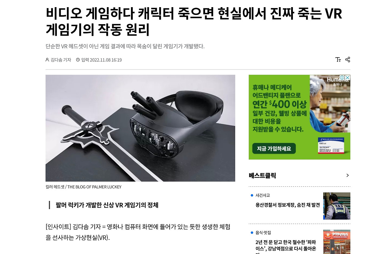 한편, 메타(페이스북)가 인수한 웨어러블 안경 회사 오큘러스의 전 대표 팔머 러키가 비디오 게임을 하다가 캐릭터가 죽으면 현실에서 진짜 죽을 수 도 있는 안경을 개발하고 있다는 뉴스 보도가 나왔다. 뇌를 정지시키거나 버그가 걸려 본인의 가상 캐릭터가 움직이지 못하는 동안 다른 유저들의 공격으로 사망하는 등의 시나리오를 예측해 볼 수 있다. 또 로그아웃이 마음대로 되지 않아 현실로 빠져나오지 못하고 가상현실 속에서만 머무르게 되는 메트릭스의 세상이 현실로 이루어질 날이 머지않았다는 예고를 하고 있는 듯 보인다. (영상으로 보기)