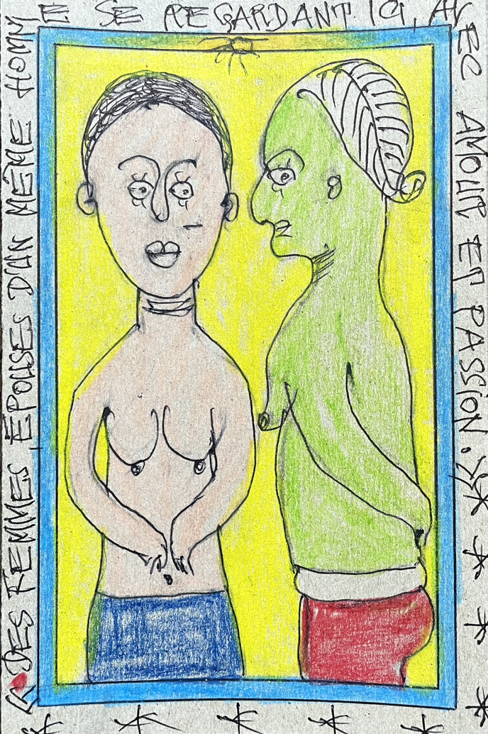 프레데릭 브룰리 부아브레는 제2회 광주 비엔날레에 참여한 적이 있다. 그때 처음으로 한국에 알려진 그는 미술에 조예가 깊었던 이건희 회장의 눈에 들어왔을 것이다. 자신과 주변 사람들의 삶을 작은 종이에 볼펜과 색년필, 크레용 등으로 글과 글림으로 드로잉을 하듯이 담아낸 이 작가의 작업은 그 자체로도 매력이 있어 우리의 마음을 움직이게 하지만 이 작가가 대단한 이유는 이것에 그치지 않는다. 그는 글을 읽고 쓰는 것이 어려웠던 자국민이 좀 더 쉬운 문자를 통해 원활한 소통을 하 길 원했다. 프랑스의 식민지였던 코트티 부아르에서 프랑스어와 토착어를 섞어 사용해야만 했던 상황에서 의사소통의 어려움과 더불어 문화 정체성에 대한 고민도 했으리라 짐작된다.
