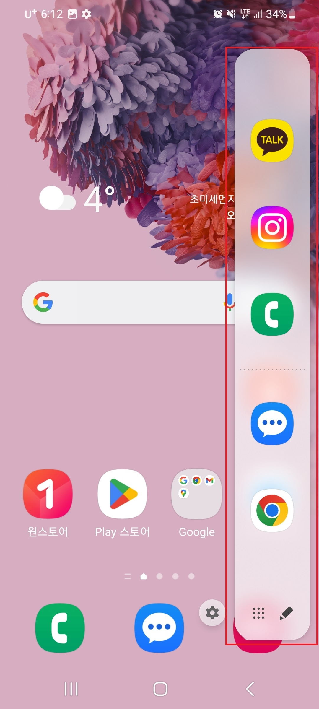 엣지 패널을 통해 다른 앱이 화면에 이미 표시돼 있어도 간단하게 구성한 패널에 앱을 빠르게 열거나 기능을 사용할 수 있다.