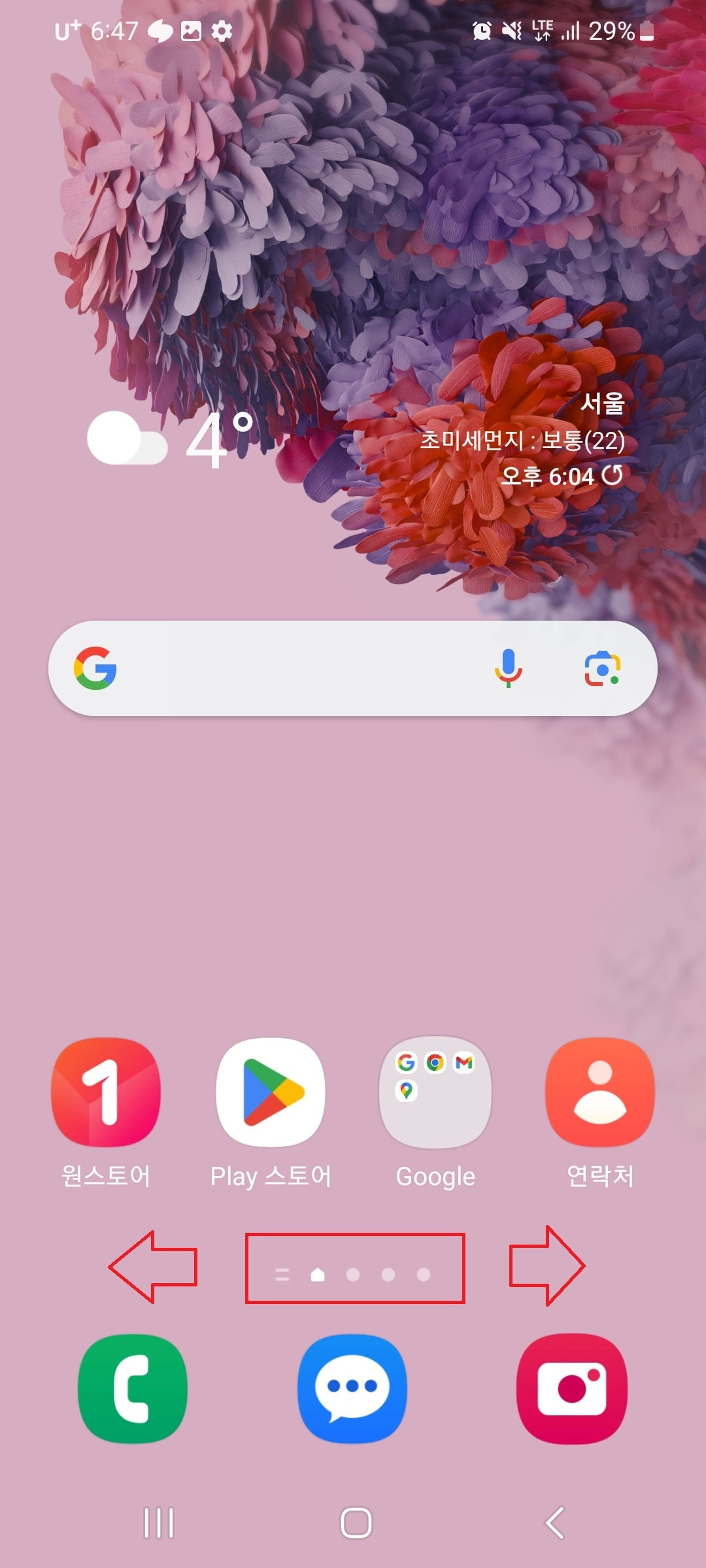 위젯을 추가해서 사용성이 높은 어플을 우선으로 자율적으로 배치할 수도 있다.