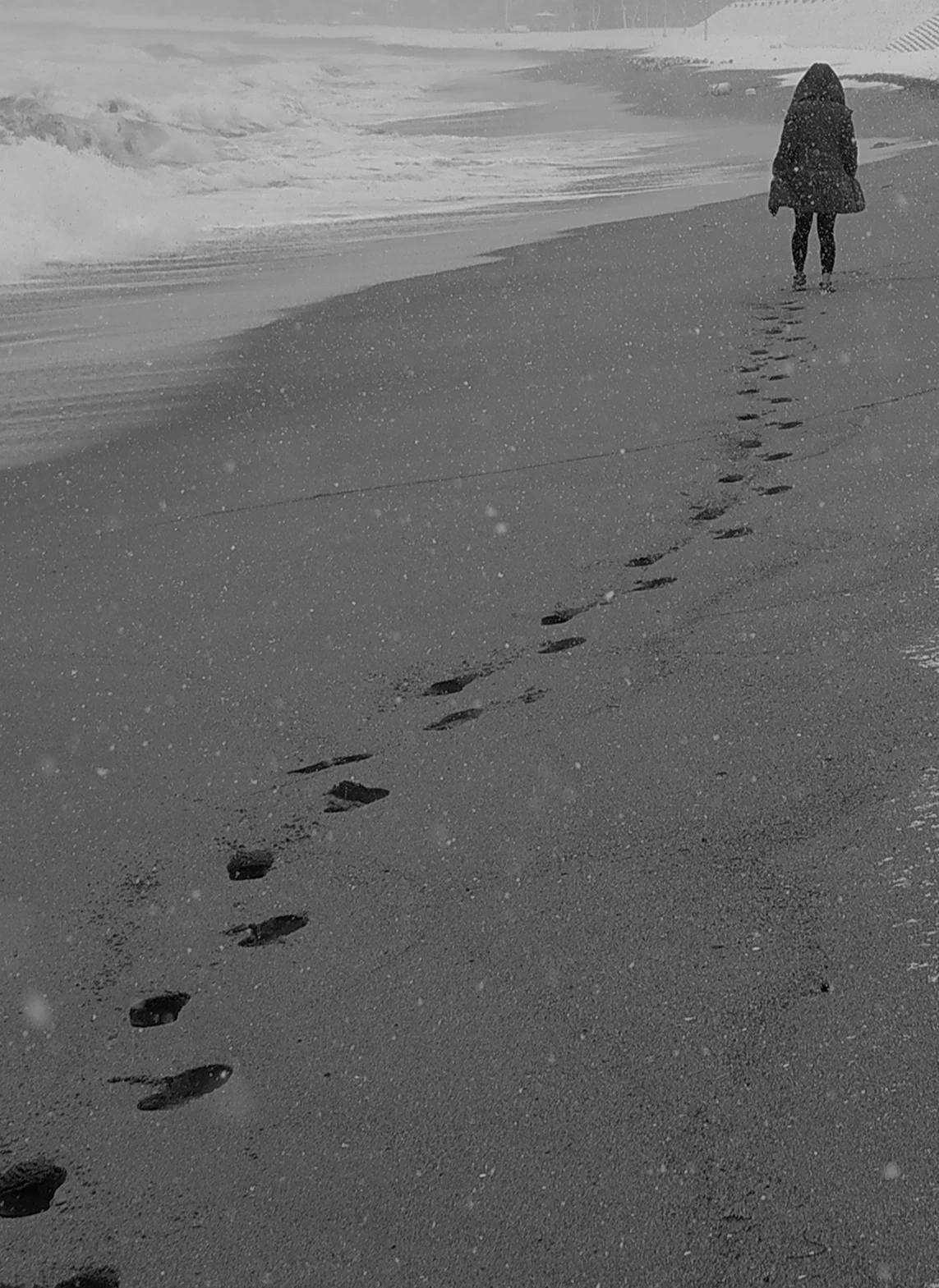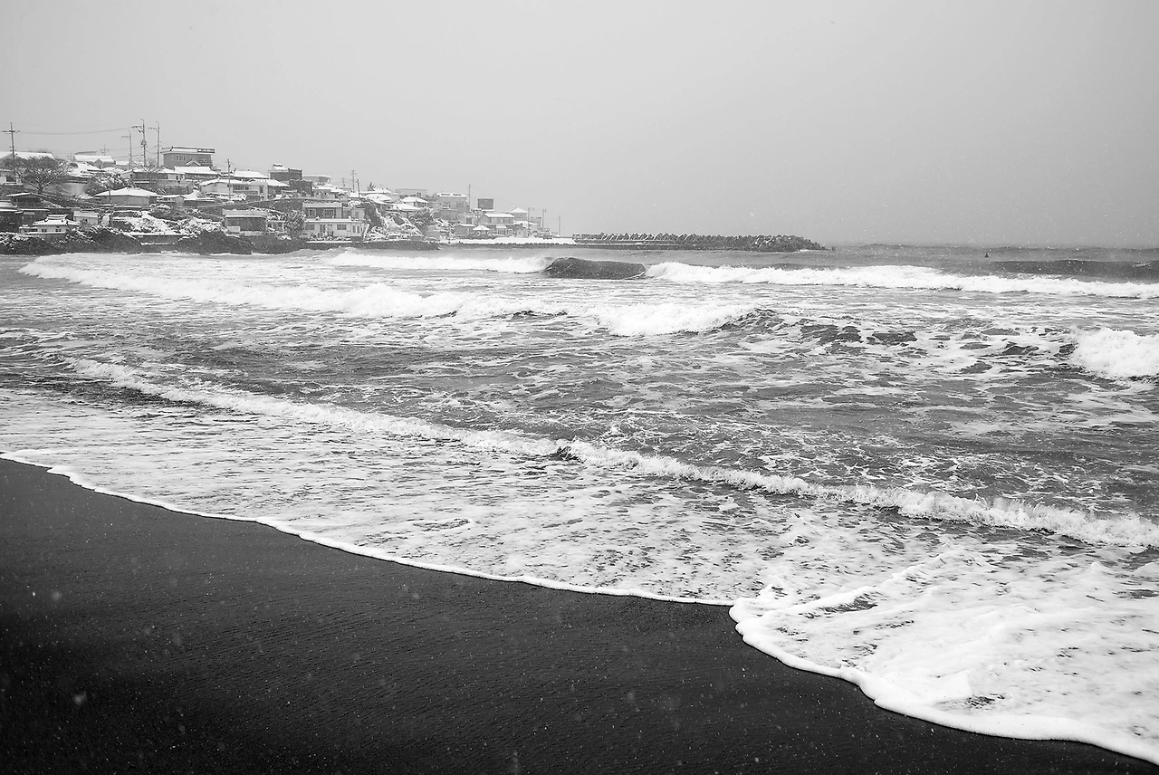 파도의 속도, 모래의 소리, 수평선의 시간. 한겨울, 펑펑 쏟아지는 눈길을 지나