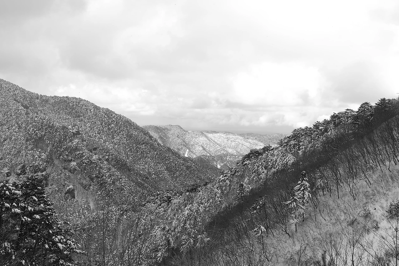 흑과 백만 존재하는 눈 덮인 겨울바다-끝없는 무채색에 안도했다.