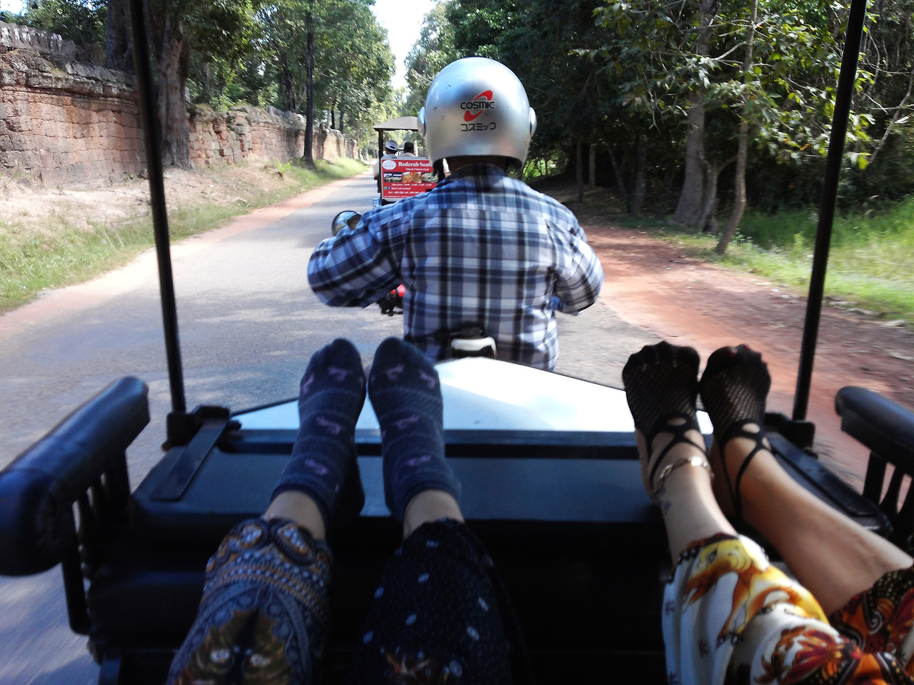 세 시간쯤 걸으니 슬슬 다리가 아파왔다. 점심 먹을 시간도 가까워져 우리는 호텔로 돌아가기로 했다. 조용한 방에서 잠시 휴식을 취한 뒤 오후에는 앙코르와트를 보러 갔다. 캄보디아의 교통수단 툭툭이를 타고.