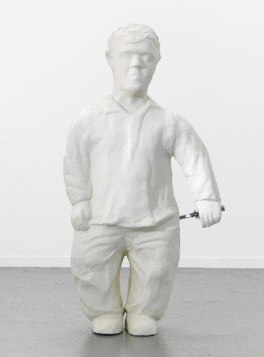 Juan Munoz, 난쟁이와 나이프 1989, 120x58x40cmⒸJuan Munoz,Instituto Valenciano De Arte Moderno무노즈는 접었다 폈다 하는 작은 나이프를 주머니에 들고 다녔다. 주머니에 손을 넣으면 나이프가 만져졌다. 내면의 폭력성이었다. 나중에는 신경증에 걸리는 것 같아 나이프를 대신 카드를 넣고 다녔다. 카드 게임을 좋아했다. 카드 게임의 손기술, 속임수를 좋아했다. 그는 폭력적인 환경에서 자라지 않았다. 그러나 작품 속 인물들은 소리 없는 폭력을 당하고 있다. 걸을 수 있는 발이 없고 볼 수 없고 말할 수 없다.