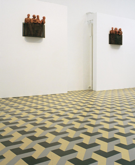 시각적인 바닥은 내면의 긴장감을 준다. 관람객의 인식에 인물들이 주는 심리학적 공간이다. 그는 말한다.