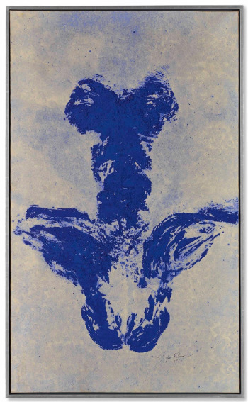 Yves Klein, Anthropometrie sans titre(ANT49) 1960 108.9x65cm ⓒChristies1962년 34세 세상을 떠나기 전 7년간 보여준 비물질적인 작업들은 예술계에 큰 영향을 주었다. 그는 눈을 감기 전 말했다. "나는 세상에서 가장 큰 스튜디오를 가질 거야. 그곳은 아주 강렬하게 일할 수 있는 공간이 되겠지." 가시적인 것을 표현하고 본다는 예술 작품. 비 가시적인 것.