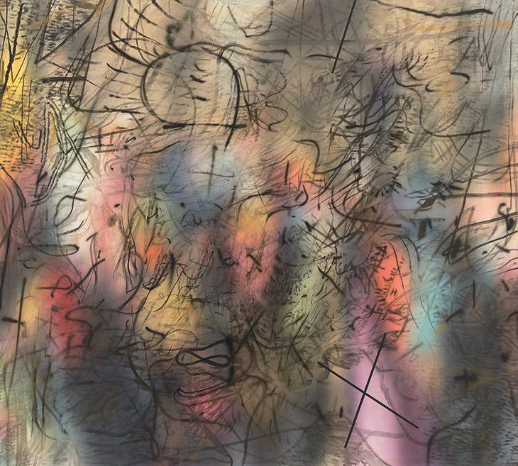 Julie Mehretu, Sing, Unburied, Sing(J.W), 2018, Ink and acrylic on canvas, 274.3x304.8cmPhoto: Tom Powel; courtesy the artist, Marian Goodman Gallery, New York and White Cube, London; © Julie Mehretu