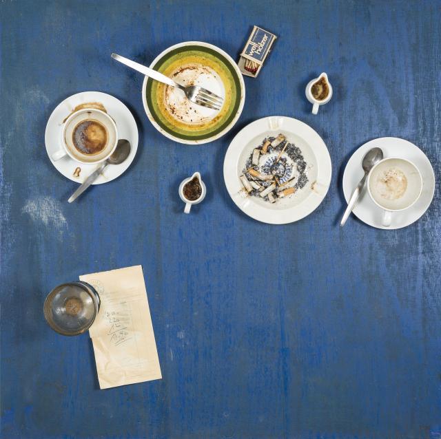 뒤셀도르프에서 푸른색 테이블 보드 위에 다 마신 커피잔과 담배를 고정시켰다. 스포에리는 규칙적이지 않고 아무렇게나 놓인 물건들을 붙잡는다. 사람들에게 '예술에서 숭고함을 찾는가? 아니면 예술 작품은 존재 자체에 가깝게 만드는 일인가?'는 질문을 던진다.