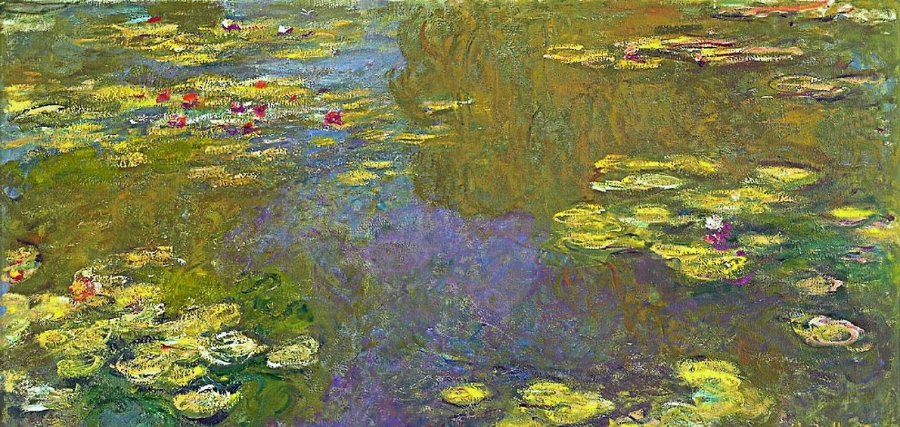 모네, 연못과 수련(A pond with water lilies), 1919, 100.4x201cmⒸChristy조스 베르헤임 죈 Josse Benheim Jeune(1870-1941)과 가스통 베르헤임 죈 Gaston Bernheim Jeune(1870-1953) 형제의 아버지, 알렉상드르(1839-1915)는 브뤼셀에 유명한 화랑을 운영했다. 파리에도 죈 Jeune 갤러리를 열고, 예술가들로부터 직접 작품을 사 모았다. 아버지 사업을 이어받아 죈 형제는 갤러리를 운영했다. 죈 형제는 주말 별장이 있는 해안가 마을 빌레-슈흐-메흐 Villers-sur-Mer로 가는 중간 기차에서 내려 지베르니의 모네 집에 들렀다. 종종 모네와 점심을 먹었다. 모네 작업실에 있는 작품들을 직접 골라 구매하기도 했다. 빌레-슈흐-메흐에서 다시 파리로 돌아가는 길에 죈 형제는 지베르니에 들러 모네가 좋아하는 싱싱한 새우를 주고 가기도 했다. 두 형제는 르누아르와도 친했다.
