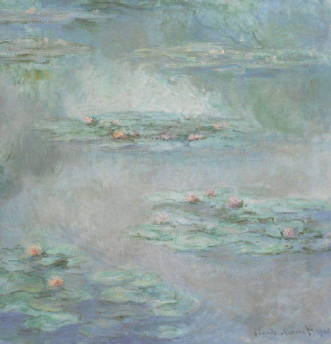 모네, 수련(Water Lilies), 1906, oil on canvas, 88.5x100cmⒸChristy모든 것은 연못 저 멀리 어디론가 사라지는 듯하다. 앞과 뒤, 빛과 원근법이 없다. 꽃들은 반짝이는 조명처럼 우리 시선을 끈다. 인상파 화가들이 많이 알려지지 않았던 시기, 폴 뒤랑 루엘은 인상파 화가들 작품을 사 모으기 시작했다. 특히 모네 작품은 루엘이 독점적으로 수집했다. 모네가 가족 생계비를 위해 싼 가격에 그림을 팔지 못하도록 충분한 지원도 아끼지 않았다. 모네가 유명해진 후 루엘은 더 이상 독점적으로 모네 작품을 살 수 없었다.