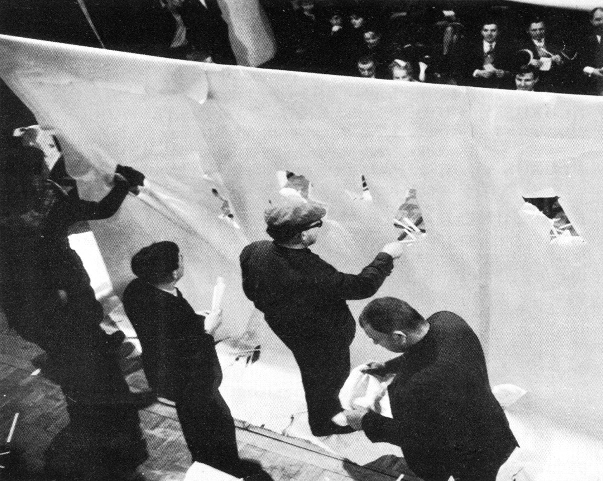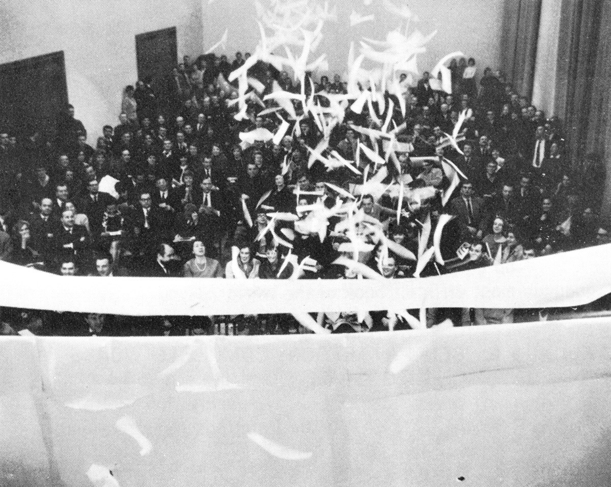 저녁 8시, 독일 뒤셀도르프 예술 아카데미에서 예술평론가이자 미술관 관장 장 피에르 빌헬름의 사회로 <페스툼 플룩소룸 플럭서스>Festum Fluxorum Fluxus가 열렸다. 무대 앞에는 거대한 흰 종이가 스크린처럼 설치되었고, 빌헬름은 무대 왼편에 놓인 작은 테이블에 앉아 준비한 대본을 읽었다.