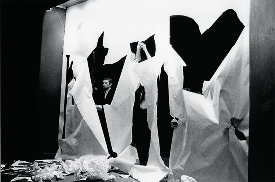 빌헬름의 말이 끝나자 벤 패터슨의 <종이 조각> 퍼포먼스가 이어졌다. 무대 양쪽에서 두 퍼포머가 폭 8센티미터, 길이 38센티미터 정도 되는 큰 종이를 들고나와서 이 종이를 앞 좌석 관객들 머리 위로 치켜 올렸다. 동시에 무대 뒤에서 누군가 종이를 구기고 찢는 소리가 나면서, 무대 위에 설치된 종이 스크린에 작은 구멍이 하나둘 생기기 시작했다. 이 구멍들 사이로 종잇조각과 종이 뭉치를 관객을 향해 뿌리자 무대 양쪽에 서 있던 두 퍼포머가 들고 있던 종이를 관객들 머리 위로 떨어뜨렸다. 무대에 설치된 종이에 난 구멍이 점점 커지면서 무대 뒤쪽에 서 있던 여러 퍼포머의 모습이 드러났다. 그리고 처음 종이를 들고 나왔던 두 퍼포머가 또다시 커다란 종이 한 장을 들고 왔는데 이 종이에서 편지지 크기의 인쇄지가 관객에게 쏟아졌다. 인쇄지의 한 면에는 선언문 같은 글귀가 쓰여 있었다.