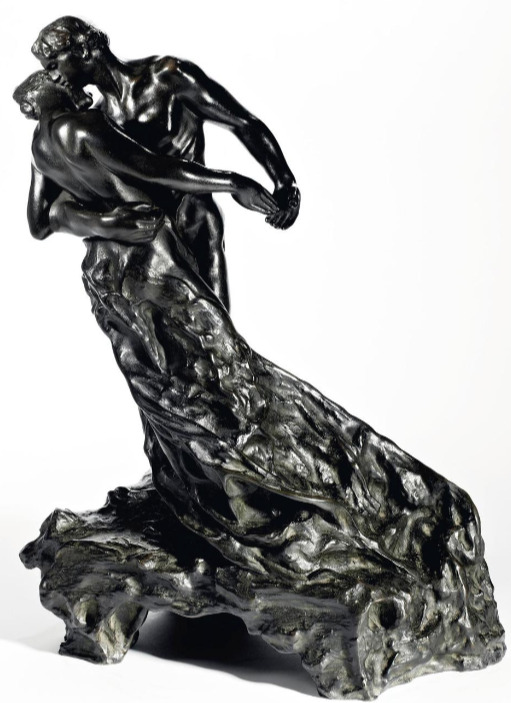 카미유 클로델 <왈츠> 1893-1900 청동, 46.5cm ⓒchristies.com사랑의 감정을 왈츠로 표현했다. 카미유에게 또 하나의 최고의 작품으로 꼽힌다. 춤추는 모습을 순간 카메라에 담은 듯 생동감이 넘친다. 첫 작품은 회반죽으로Plaster 만든 누드였다. 평론가 아몬드 다요Armand Dayot는 살아 움직이는 듯한 춤추는 표현과 아름다움을 칭찬했다. 그러나 누드를 대중에게 전시하기에는 부적절하다고 지적했다. 카미유는 하체 부분에 드레스를 휘감아 두 번째 버전을 제작했다.