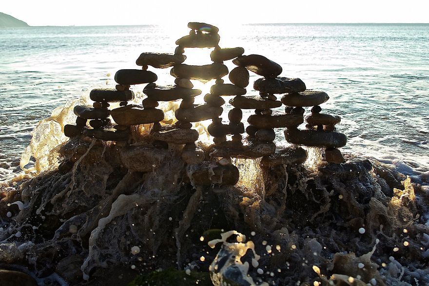쓰러지지 않는 돌탑을 쌓기 위해 적절한 크기와 형태의 돌을 찾는 일은 쉽지 않다. 오랜 시간이 걸린다. 브런트의 작업은 자연 속을 돌아다니는 시간이기도 하다. 완성된 작품은 사라질 수 있는 일회성을 갖기에 사람들에게 오려면 사진에 기댈 수밖에 없다. 브런트는 작품을 완성한 후 사진으로 기록을 남긴다. 이런 그의 작업은 자연에 의한 대지 예술이자 사진과 함께하는 상호보완적인 예술이 된다.