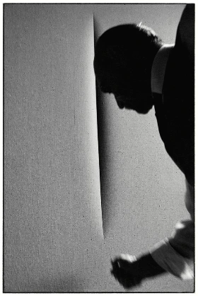 1958년부터 단색 캔버스를 칼로 베기 시작했다. 그의 삶과 예술 사이 경계를 무너뜨리는 베기이기도 하다. 그는 조각가, 화가이길 원하지 않았다. 단지 빛과 공간이 새로운 것을 만들 수 있다는 것에 흥미를 가졌을 뿐이다.