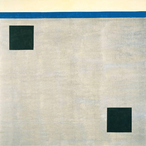 파란색, 복숭아 색, 노란색 파스텔 띠를 보여준다. 계산된 듯 그어진 동일한 간격은 답답함이 아닌 오묘한 조화를 느끼게 한다. 마르코 로스코 회화보다 톤을 많이 덜어냈다. 그녀에게는 색이 중요하지 않았다. 은은한 빛의 존재, 그것이 순수한 감정에 방아쇠를 당겼을 것이다.