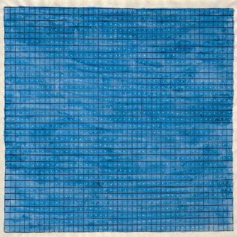 그녀는 반복되는 격자무늬 패턴으로 새로운 작품들을 만들기 시작했다. 첫 격자무늬 작품이다.