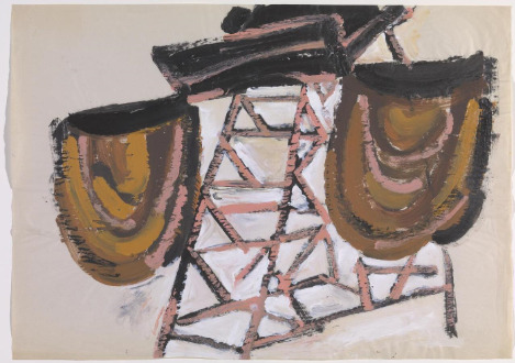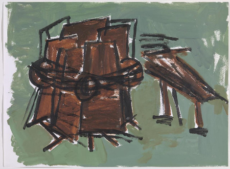 Phyllida Barlow, Untitled, 2003Acrylic paint on paper558×760 mmⓒPhyllida Barlow두꺼운 붓질로 아이 그림처럼 친숙한 느낌을 준다. 비슷한 크기와 모양들을 반복적으로 쌓거나 겹친다. 그녀의 드로잉은 조각적 드로잉 Sculptural Drawings이었다. 드로잉은 조각을 위한 것이었다. 발로우에게 드로잉은 작품 과정에 중요한 요소였다. 조각을 완성하기 전 머릿속에서 전체를 이해하는 중요한 과정이었다. 이런 드로잉을 이십 년 이상 계속했다.