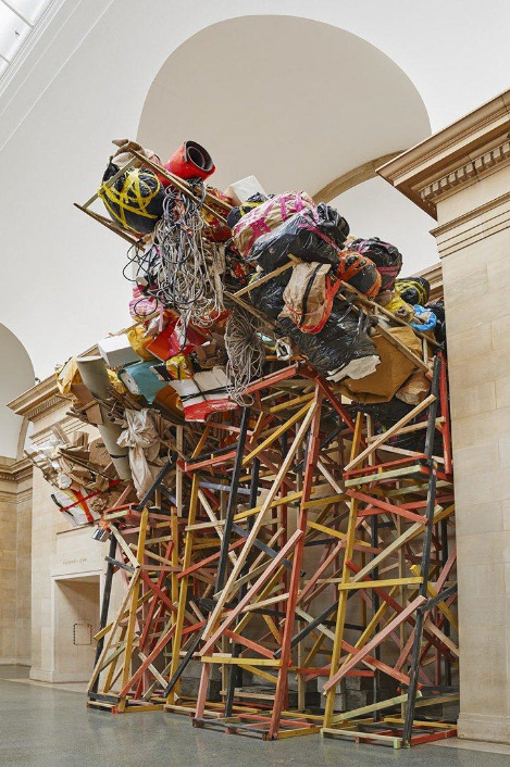 Phyllida Barlow:,untitled: dock: 5 stacked crates, courtesy Hauser & Wirth Photo:itsnicethat.com나무가 철판 위에 꽂아있다. 짐들이 가득 쌓여 있다. 곧 쏟아질 듯 가득 차 무게를 겨우 견디고 있다. 발로우는 할머니의 선반을 기억한다고 했다. 할머니는 항상 선반에서 무엇인가를 꺼내 재사용했다. 할머니의 선반은 초, 고무줄, 주전자 등으로 가득했다. 모든 것은 버릴 것 없이 사용 가능한 것들이었다. 그리고 지금까지 50년간 사용하고 있다고 한다. 사물들은 살아있는 물건이고 그것에는 버려지지 않는 기억이 있다고 그녀는 말한다. 매끄러움도 부드러움도 없는 판자 더미 숲이다. 관객은 작품 주변을 배회하거나 몸을 숙인다. 때로 쏟아져 내릴 것 같아 아래로 지나가기 꺼려한다.