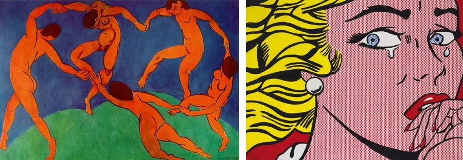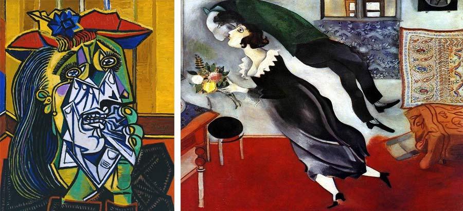 피카소의 울고 있는 여인을 보세요. 정리되지 않은 듯 들쑥날쑥한 각진 선들이 그녀의 절망적이고 고통스러운 감정을 강조합니다. 반면에 샤갈의 여인은 방금 꽃다발을 선물 받은 듯 행복함을 부드러운 곡선으로 나타냈습니다.