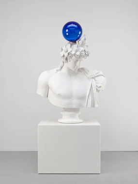 푸른 볼은 우편함과 같은 현대적인 물건뿐만 아니라 그레코 로마 시대(Greco-Roman 그리스와 로마의 혼합 양식)의 흉상이나 조각상과 비슷한 작품들 위에도 올렸다.