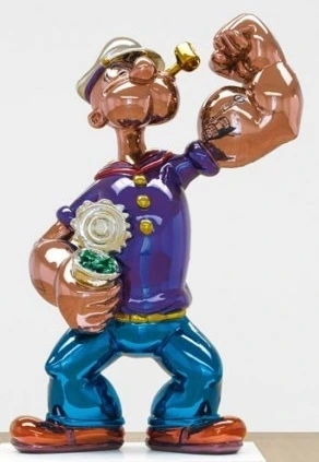 앤디 워홀이 1961년 <뽀빠이>를 내놓았고, 로이 리히텐슈타인 Roy Lichtenstein 역시 <뽀빠이>를 선보였다. 제프 쿤스의 <뽀빠이>는 세 번째였다. 새로운 예술 표현의 아이콘이 되었다. 그는 오래된 영웅 뽀빠이를 21세기로 소환했다. 근육을 부풀려 3차원적이고 사람보다 훨씬 큰 크기로 재현해냈다. 고도의 기술이 들어간 뽀빠이는 선명한 광택으로 빛을 반사한다.