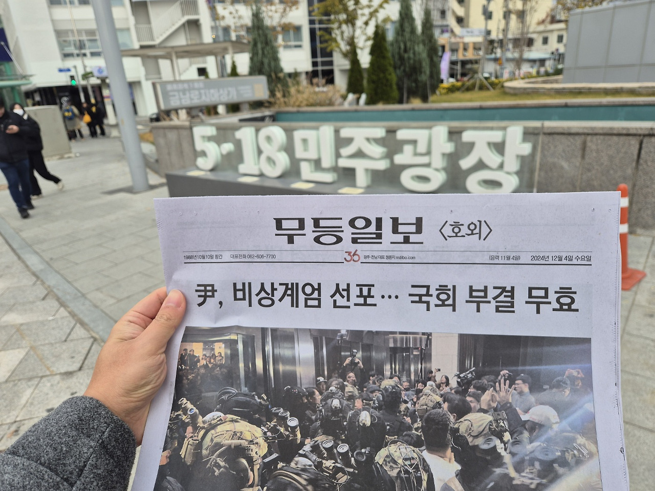 전남도청 앞 5.18민주광장은 역사적 공간인만큼 많은 언론사에서 이 상황에 관하여 시민들을 인터뷰하고 있었다. 묵묵하게 출근하는 시민들과, 계엄에 분개하며 인터뷰하는 시민들이 뒤섞인 이 공간에서 형용할 수 없는 많은 생각이 들었다.