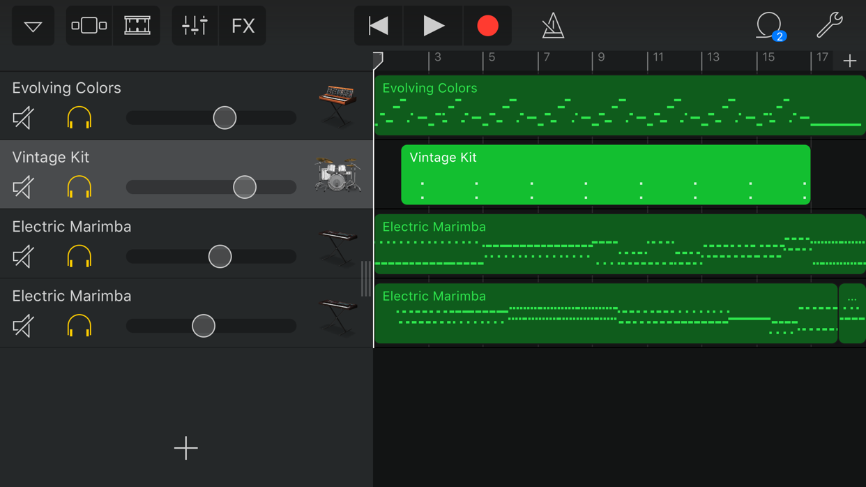 나도 한번 스포츠 경기에 어울립법한 음악을 만들어 보고 싶어서 거라지 밴드로 간단한 멜로디를 만들어 보았다.