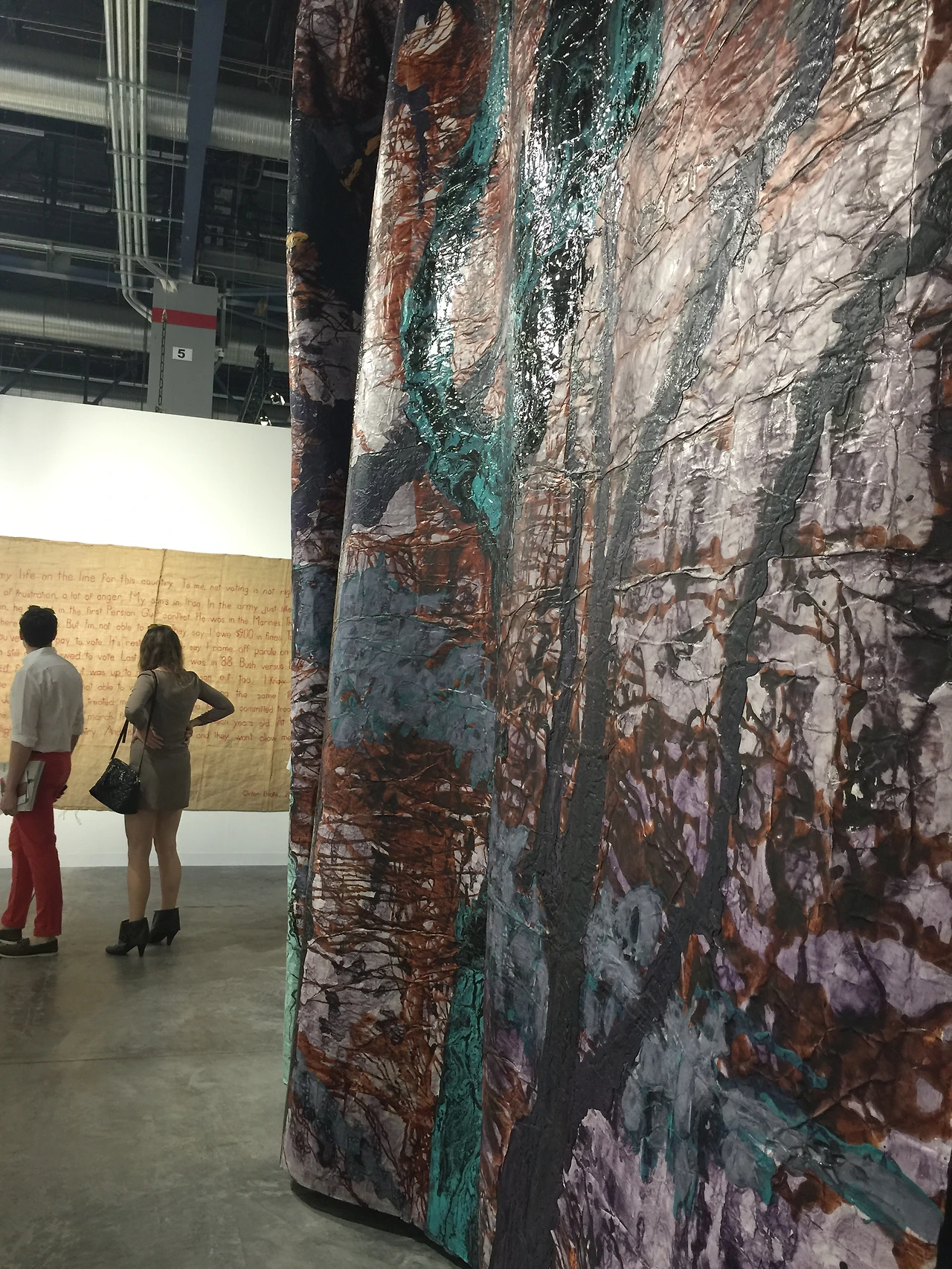 Rodney McMillian, Many Moons (detail), 2015, Latex, acrylic, ink on paper mounted on fabric
