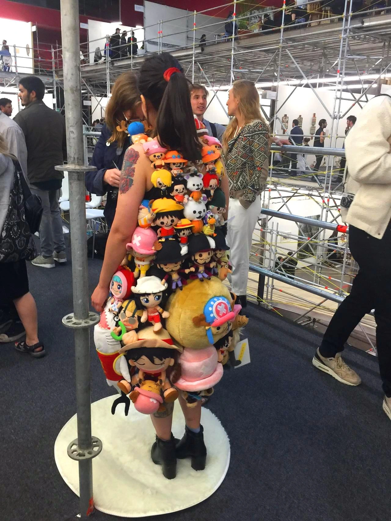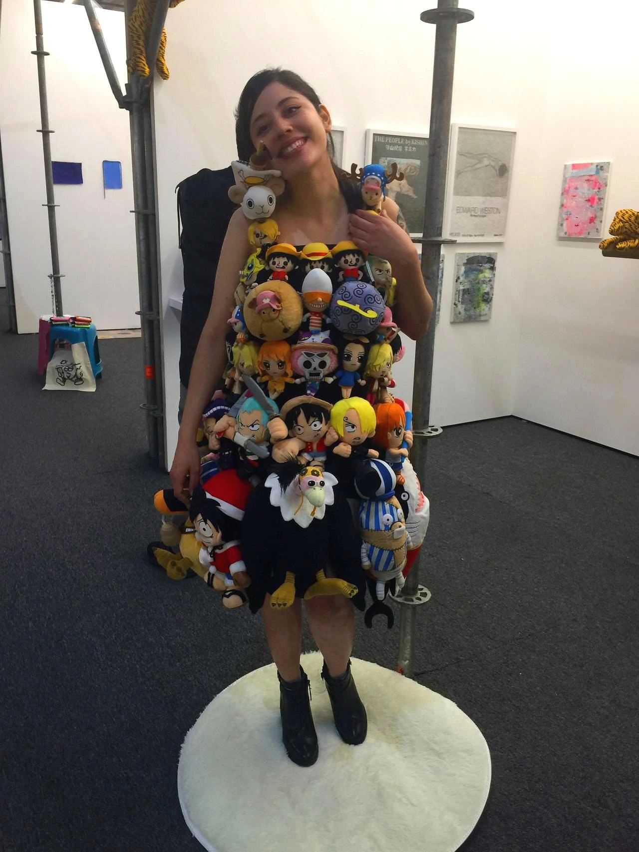 도쿄에 위치한 에이토 에이코 갤러리가 선 보인 오카모토 미츠히로 Okamoto Mitsuhiro의 작품 One Piece One Piece (2016)는 유명 만화 원피스에 등장하는 온갖 캐릭터 인형으로 만든 드레스 형태의 조각 작품이다. 이 캐릭터 인형 장식의 드레스 작품을 직접 입고 갤러리 부스 근처를 돌아다니며 사람들과 사진을 찍어주는 여성 모델. 내가 사진 한 장 찍어도 될까요? 물어보니 저렇게 환하게 예쁜 미소를 보여주며 포즈를 취해준다.