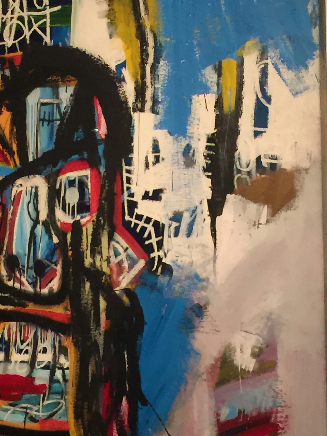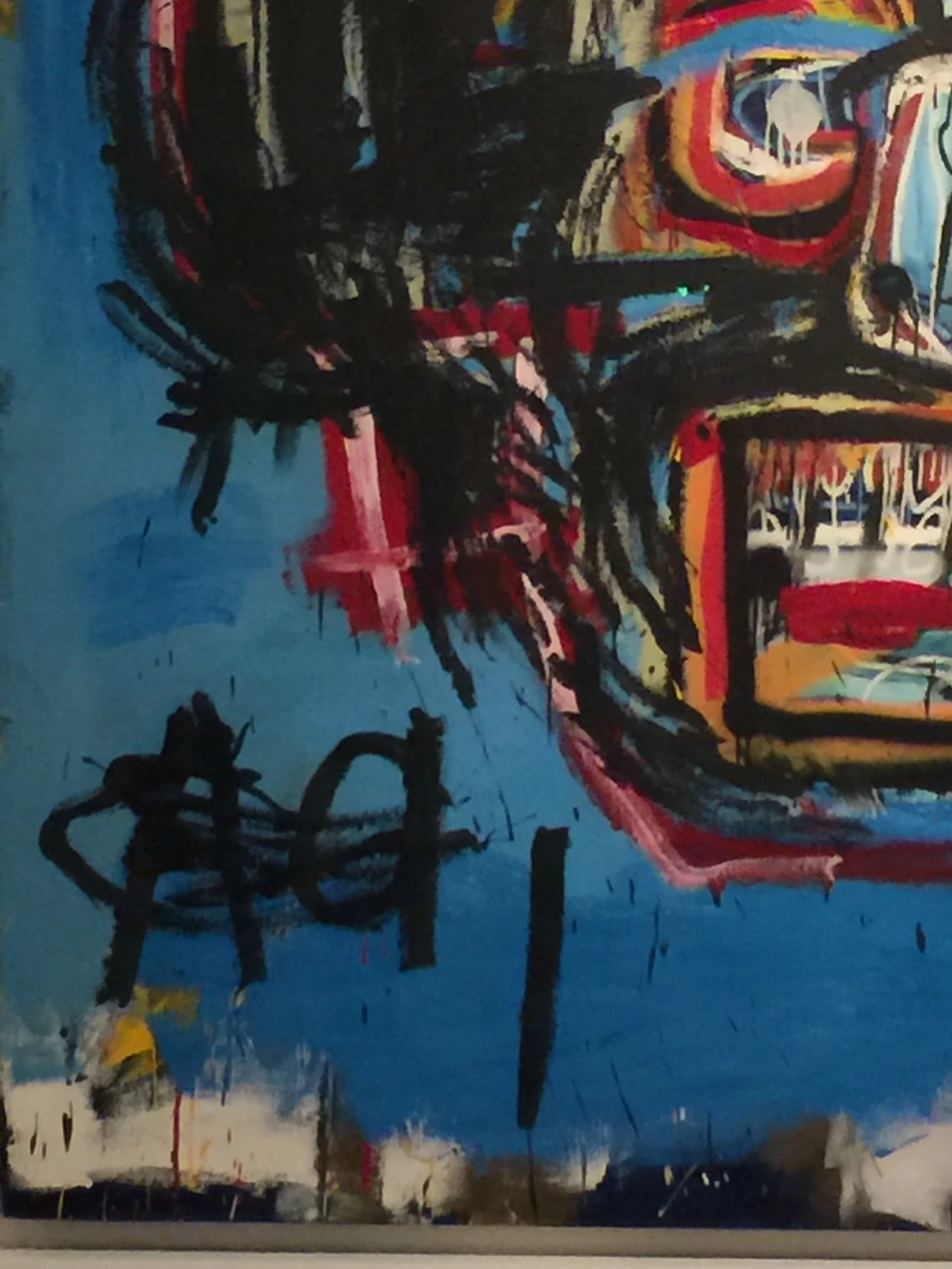얼기설기, 그 형태와 경계가 모호한 색면과 선으로 주요 형태와 바탕이 시끄럽게 혼재하는 바스키아의 작품을 보고 있으니, 눈앞에 보이는 것은 분명 회화 작품인데 마치 고장 난 브라운관 텔레비전 화면을 보는 듯한 기분이 들었다.