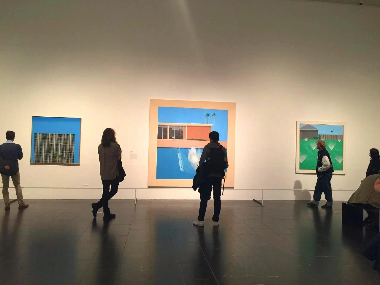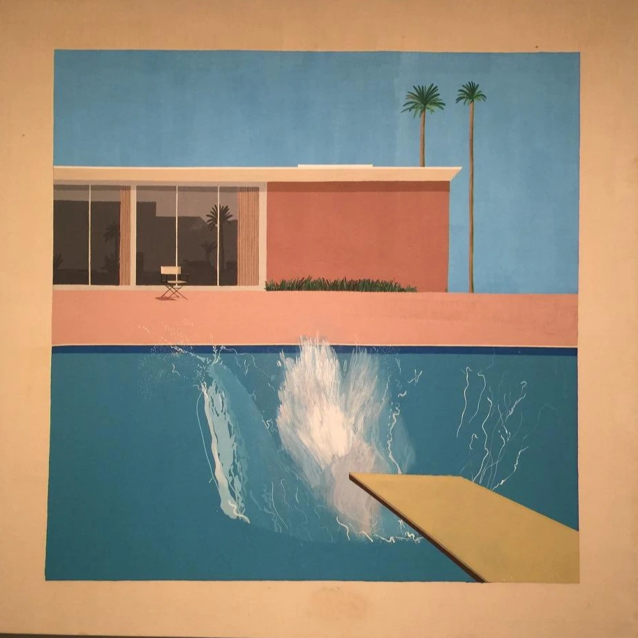 호크니의 <A Bigger Splash(1967)>는 현실적인 이미지를 반영한 것이라기보다는 할리우드 식의 환상에 가까운 출세지향적인 느낌의 호화스러운 캘리포니아 라이프스타일에 대한 상징적인 묘사를 반영한 결과물로 볼 수 있다.
