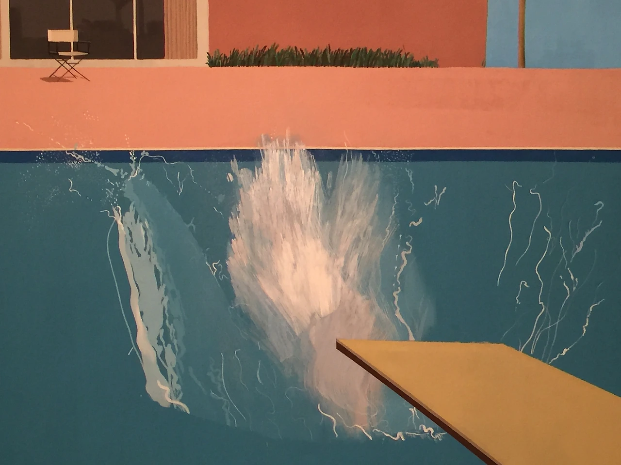 동일한 수영장 주제로 제작된 3개의 대형 시리즈 작품 중 마지막 작품으로 호크니가 수영장에 관한 책에서 찾은 이미지에 기초하여 그려졌다.