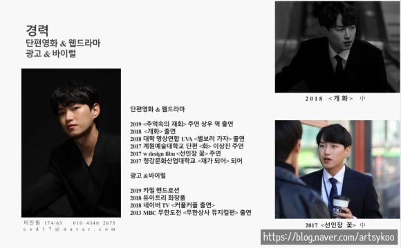 Artsykoo. 이진원 배우는 어떤 사람인가요? 그리고 어떻게 배우를 결심하게 되었나요?